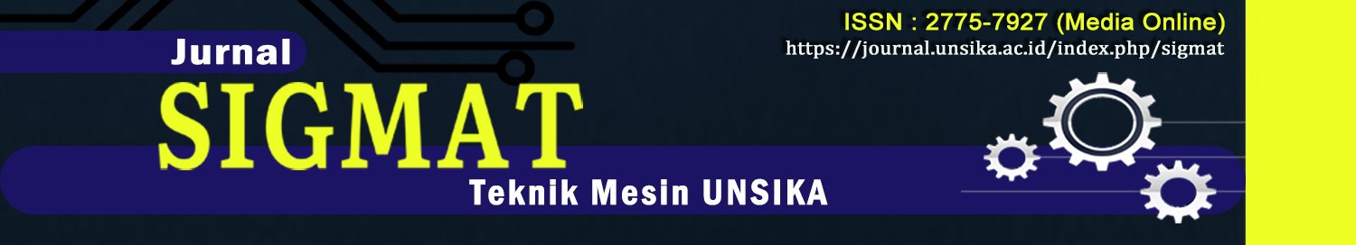 Jurnal Sigmat Teknik Mesin UNSIKA dibuat sejak Febuari tahun 2020 oleh Jurusan Teknik Mesin, Universitas Singaperbangsa Karawang. Frekuensi terbitan 2 kali setahun (April dan Oktober).
